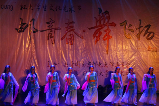 我院的舞蹈队第三个登场,这支舞蹈队由我院大一、大二的女生们组成。伴随着曲调婉转的《采薇》,我院女生身着淡蓝色纱质舞衣,袖若流水清泓,裙若荧光飞舞,纤腰灵动,回眸浅笑,倾身起舞,舞姿婀娜,犹如月下仙子,赢得全场热烈掌声,也得到了评委老师的高度认可。