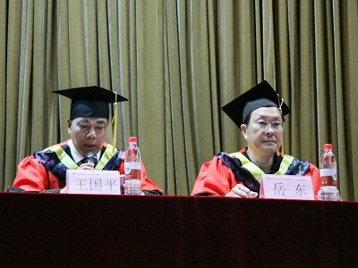 毕业典礼在雄壮的国歌声中拉开了序幕,杜书记宣布大会开始并有请王国平副校长、岳东院长和教师代表付蓉老师先后致辞。