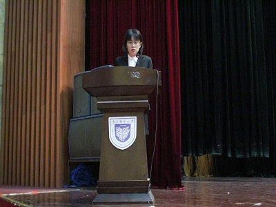 大会第五项,高年级学生代表李雪发言。已经经历三年大学生涯的她向新生分享了自己在学院两年来的成长经历,望新生从中借鉴,共同为学院的辉煌明天献己之力。