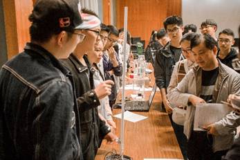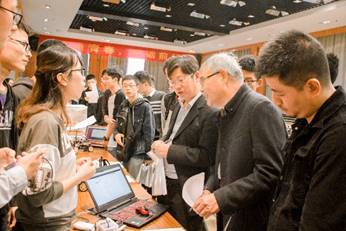 下午3:00,参赛选手在科协工作人员的指引下有序进入比赛会场,进入参赛展台,按照顺序放入自己的参赛作品。本次比赛有幸邀请到七位评委老师:我院的关工委欧阳知健老师、党委副书记杜月林老师、副院长陈小惠老师、副院长张腾飞老师、分团委副书记赵勃老师、电气工程系陈轶涵老师以及2017级辅导员仲鹏达老师。首先,杜书记对本次大会进行致辞,杜书记从“天时地利人和”的角度发表讲话,谈到了我们学院对科技制作的大力支持;然后张院长发表讲话,张院长针对往年的参赛情况以及参赛作品对我们今后对比赛的方向以及作品的选择提出了建议。下午3:30,主持人宣布比赛开始,两队评委老师分别到各个展台对各个参赛队伍的作品进行评审。评审过程中,参赛选手分别向评委老师讲解自己的作品功能以及创新点,评委老师分别针对不同的作品从技术和实际生产应用方面向选手提出问题,并给出建议以及作品的发展方向。