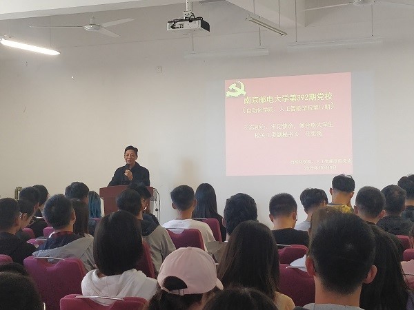 为进一步做好发展党员工作,加强对入党积极分子的培养教育,提高入党积极分子思想政治觉悟,坚定理想信念,端正入党动机, 2019年10月15日下午,自动化学院、人工智能学院党委在自动化学科楼319会议室举行了南京邮电大学第392期(自动化学院、人工智能学院第17期)入党积极分子培训班开班典礼。自动化学院、人工智能学院党委副书记杜月林、校关工委副秘书长孔宪禹、组织员李艳梅出席了此次开学典礼,共119名培训班学员参加了此次入党积极分子培训。