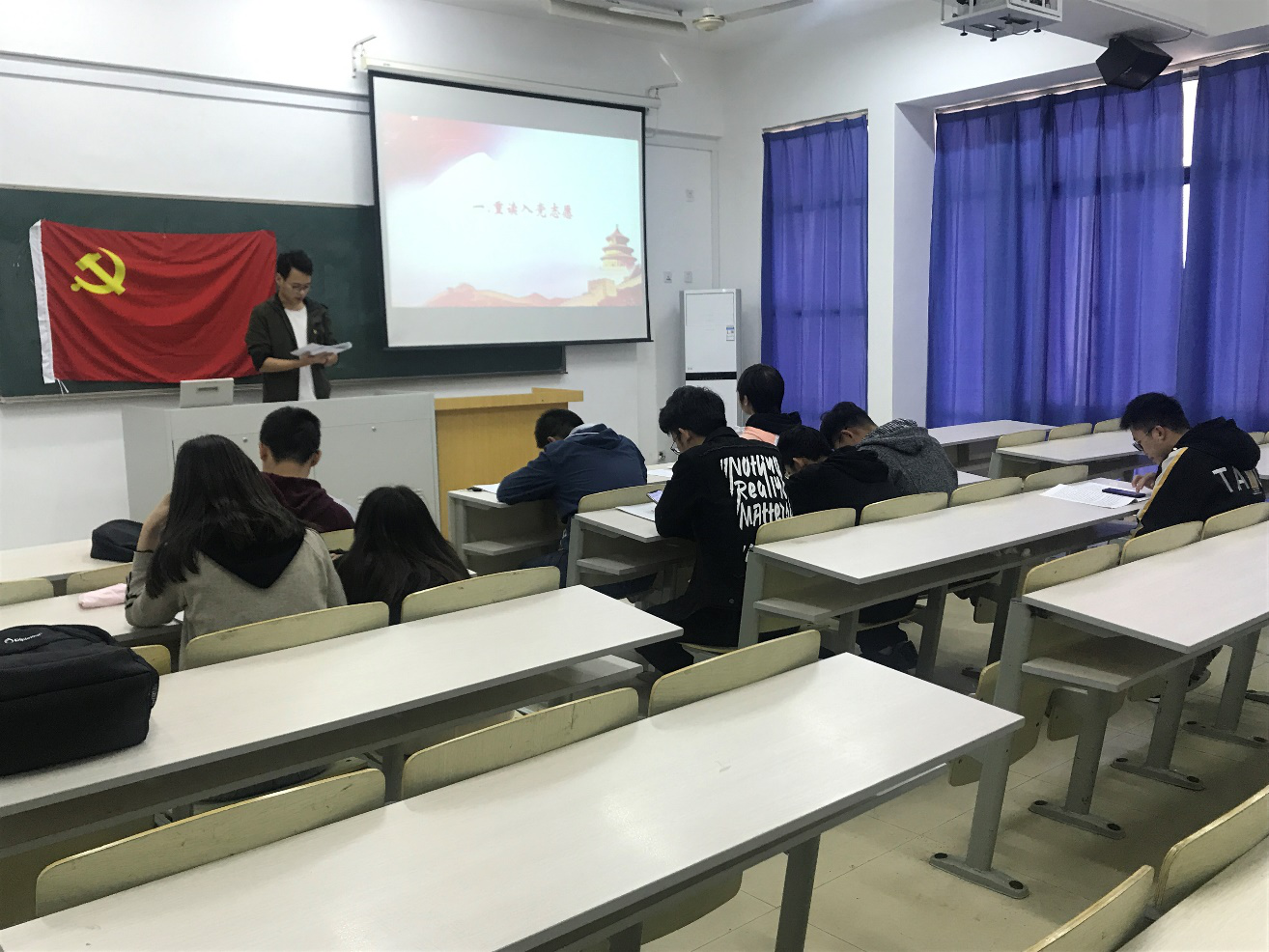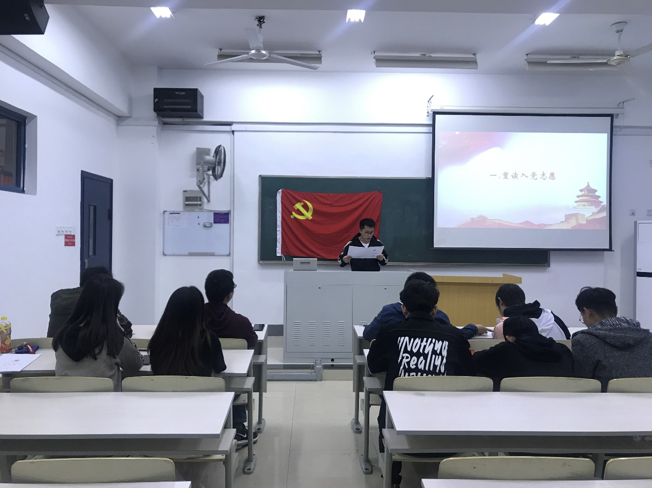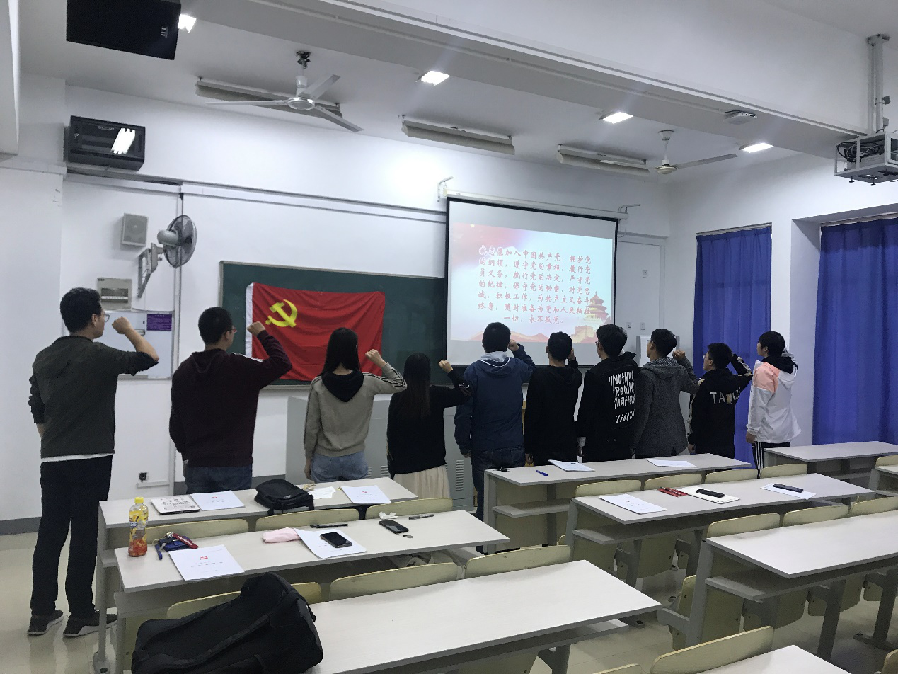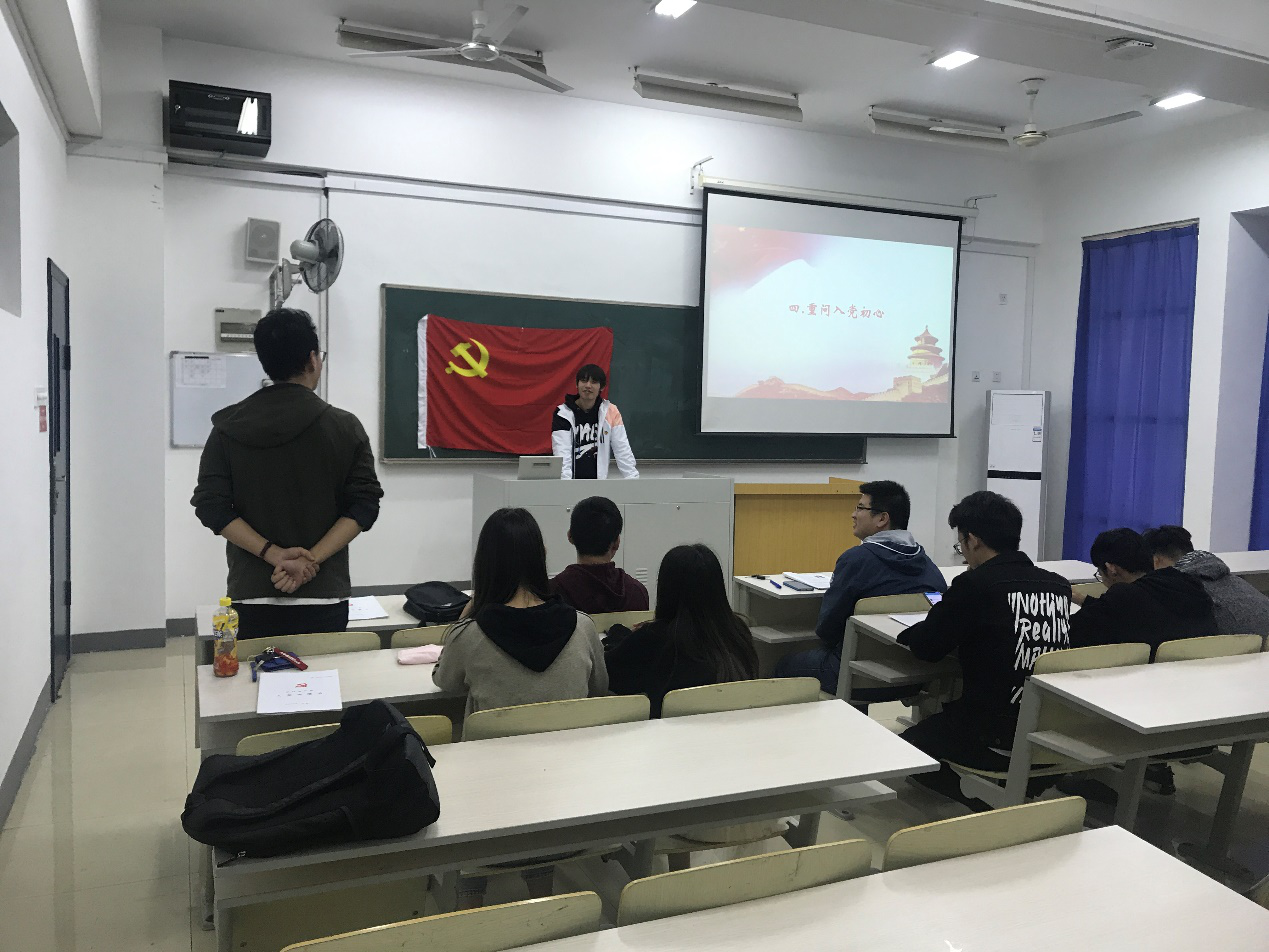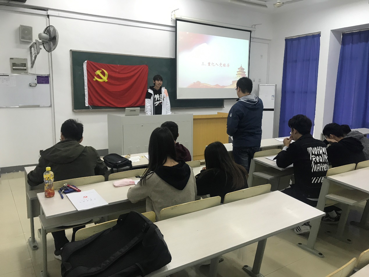 南京邮电大学自动化学院、人工智能学院研2018级学生第二党支部于2019年10月28日,在教三109开展“四重”主题党日活动,会议分为四个部分:重读入党志愿、重温入党誓词、重忆入党经历、重问入党初心。全体党员参加本次党日活动。