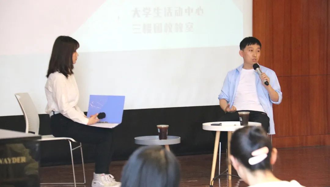 本期活动邀请到杭州赛客网络科技有限公司总经理、学院06届校友谢文聪担任主讲嘉宾。研究生、本科生共计50余人来到现场,2020级王思琪同学担任主持人。